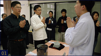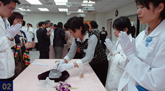 在遗体正式用于解剖前,学校会举行“遗体启用追思法会”,学生与死者家属共同参加。在肃穆的佛教仪式上,学生向“大体老师”表示敬意和感谢,家属也表达依依惜别之情。人们共同为捐赠者祝福。