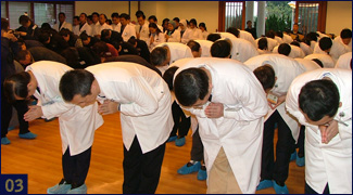 而在每堂解剖课前,学生都要向遗体行问讯礼(佛教仪式的鞠躬礼)及默祷祝福。当学期结束后,学生则会将遗体缝合恢复原状,并以白布包裹。
