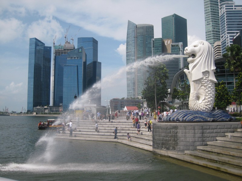 新加坡土地面积仅710平方公里,人口480万,其中70%为华人。新加坡的象征——狮身鱼尾像