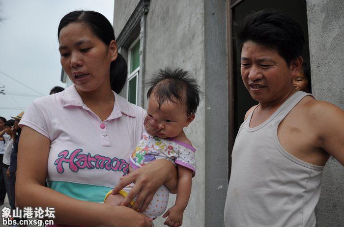一个出生才八个大的小女孩雪儿,右脸一侧长了肿瘤,虽然已经三次到上海进行激光治疗,但病情一直不见好转。现在,肿瘤越来越大,已经长满了右脸。面对着孩子的不幸,一贫如洗的小雪儿一家一筹莫展。日前,象山港论坛“绿丝带”爱心人士前往定塘镇金牛港村看望了小雪儿。