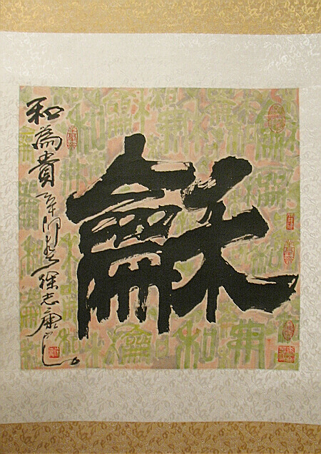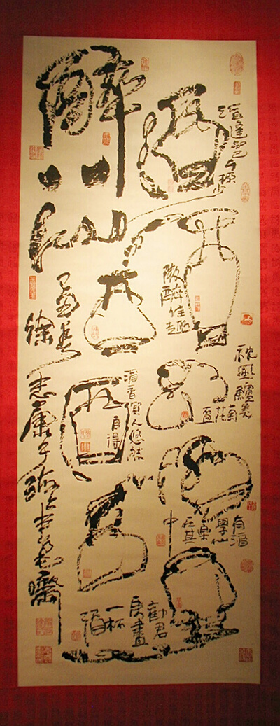 从60岁起,徐志康决心走出一条自己的路来——“创意书法”。徐志康不仅得到了金农体横粗直细、点画破圆为方的精髓,同时还将行草书的飞白法融入漆书之中,使他笔下的漆书更加灵动生韵、独树一帜。