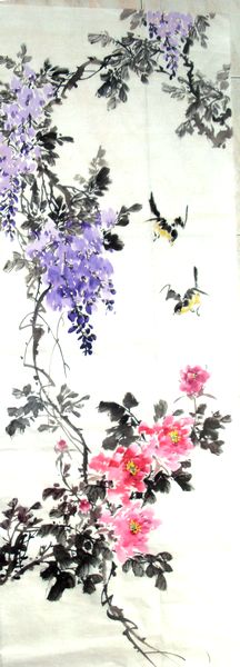 1月4日画6尺对开紫藤牡丹.jpg 《满园春色》