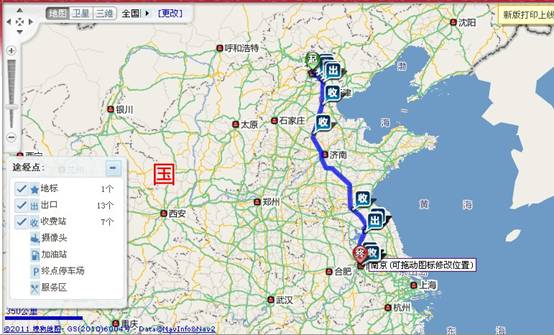 然后到达南京长江大桥(距京1058公里,收费10元),晚上10:40终于顺利进入南京市区。全程共花费16个小时,里程1070公里,