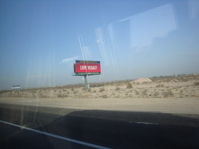 2012年1月21日早上九时左右,我们乘坐大客车,离开洛杉矶前往400公里外的拉斯维加斯,大客车奔驰在高速公路上,距洛杉矶一小时的车程内,公路两边是小山,是小集镇群和别墅群。美国有一个现象,就是有钱人住郊区,住远郊别墅,钱少的人才住市中心地带。汽车行驶一小时后,进入了戈壁沙漠地带。10时50分,到达位于戈壁的巴斯托小镇。巴斯托镇上无居民,但建有一大批购物商店,在这个小镇上停车1个多小时购物。由于导游当时没有讲清楚在这个地方购物是全美国最便宜的地方,我们还认为是旅游导游安排准备宰人的地方呢,但是,那么多国际品牌的商店内,衣服、皮包确实便宜,也采购了一些东西,总有些消费吧?买了衣服、包包、等。买的时候很高兴,认为捡到了大便宜了。我们一个旅游团26名的客人,起码采购了3万美金的物品。虽然后来到了宾馆,仔细看了所购物品,一半是中国制造的 .到美国来以前,看了报道,经常听到这个事情,想不到怎么仔细,也同样吃药了。想想一样是中国制照,出国的产品质量肯定比国内好的。也就算了。午餐就在这个小镇的自助餐厅里吃中餐。实在没有什么胃口。