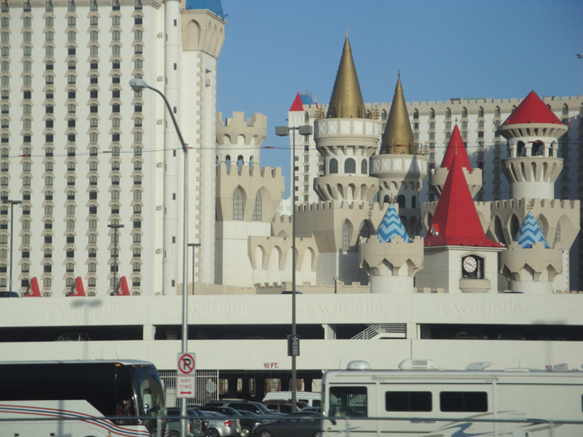 然后又乘车约1个多个小时,一进入内华达州,赌博便成为合法的,两个州的分界线一侧就建有内华达州的几个豪华的赌场。 经过大半天的车程,下午三时半到达拉斯维加斯,我们住在大马戏赌场旁边的宾馆。分配好房间,休息15分钟后,外出吃晚餐,