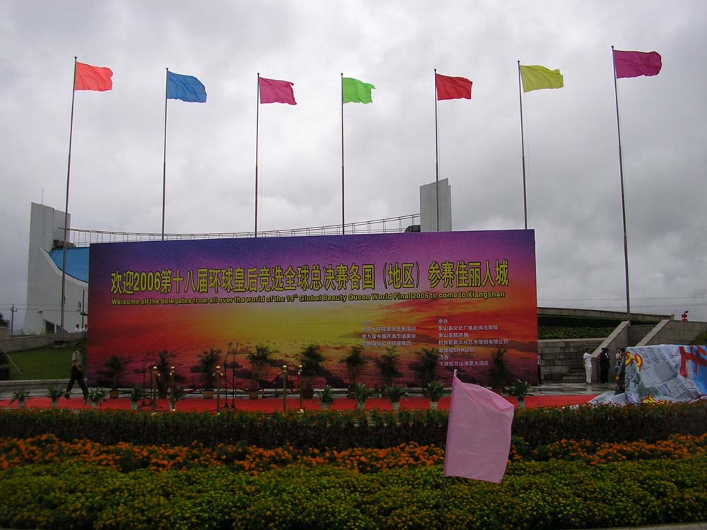 2006年第18届世界环球皇后总决赛入城仪式在今天上午(2006年9月6日)在象山丹城人民广场举行,全世界46个城市的46位佳丽到达象山!