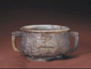 宋时,受理学“格物致知”思想的影响,文玩鉴赏成为时尚,对三代青铜器的研究也颇有成果。于是宋代的玉器形制便又多出了一个类别,那就是仿古青铜器玉器,简称仿古玉器。本器即以青铜簋为蓝本,但在器型和纹饰上多有增损变化,玉料也不是黄色。
