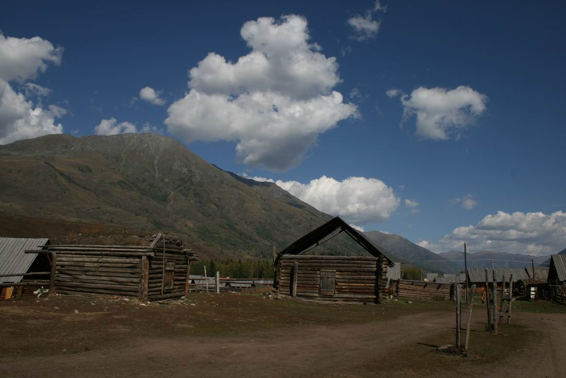当天晚上我们就住在喀纳斯景区内,一到晚上天气就冷下来了,宾馆条件不好,没有空调。我的同事从我们房间搬走了一条被子,给自己加温。吃饭的时候喝了点小酒,我独自一人又出去溜了溜。不远处是牧民的定居处,都是小木屋,四周围一圈木栅栏,极具生活气息,一下子就让我想起了《天地英雄》里的镜头。这种天气在外面已经让人感到很冷了,但小木屋里的点点灯光让人感到非常温馨。喀纳斯的黄昏是美丽的,黄昏落日的光照在木屋上,让木屋涂上了金子,就像我照片上照的一样。这时游人已经不多了,几头奶牛在屋旁觅食,让人觉得安静而祥和。喀纳斯的清晨也是美丽的,可惜我偷懒了,起床晚。但是当我起来的时候,我还是感受到了清冽的空气和神秘的雾气。就象胡斑竹说的那么让人向往。由于白天和晚上温差大,所以喀纳斯湖和喀纳斯河上的雾非常厚。清晨的太阳照在木屋上,和背后的雾一起组成的景色还让我回味无穷。 |