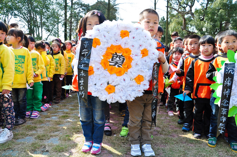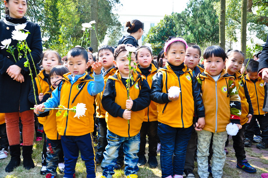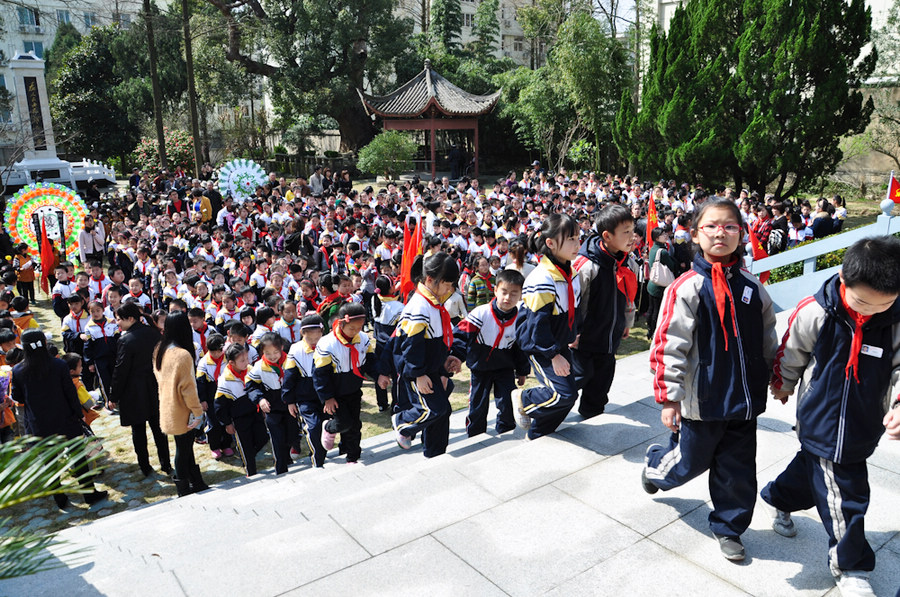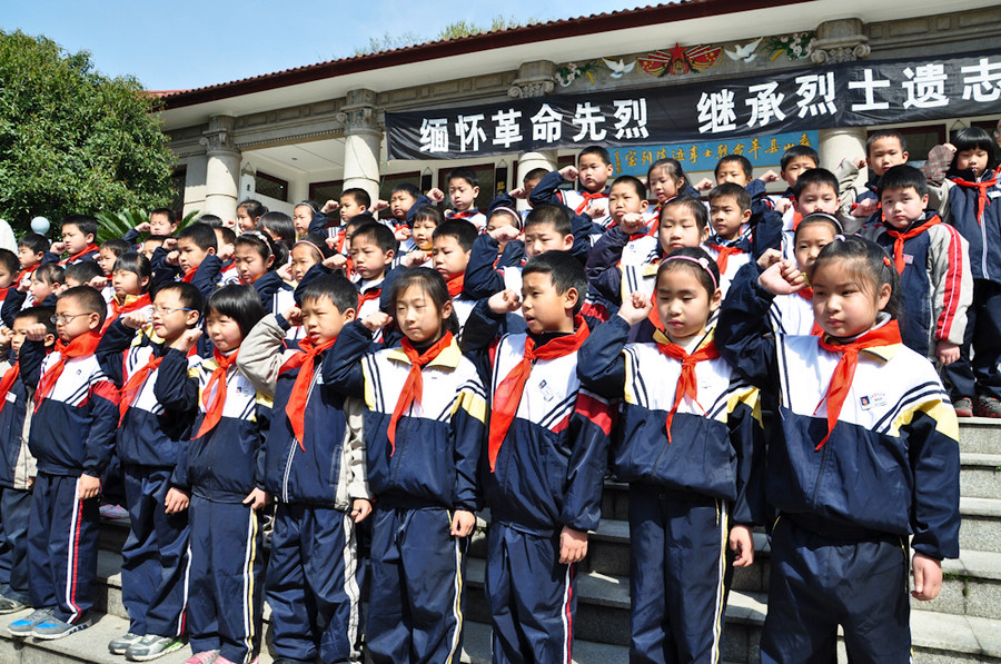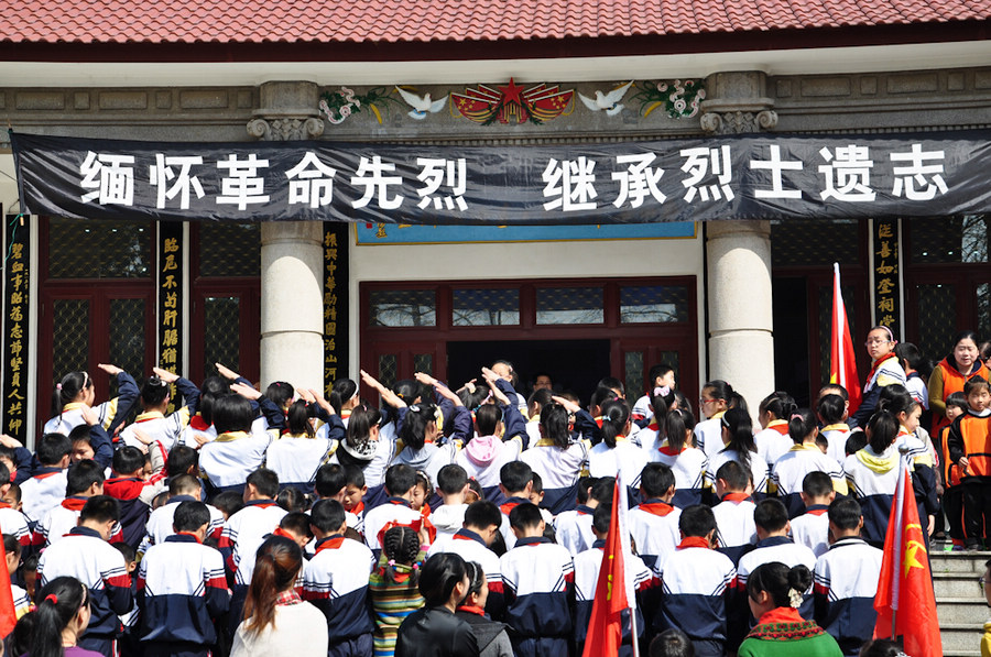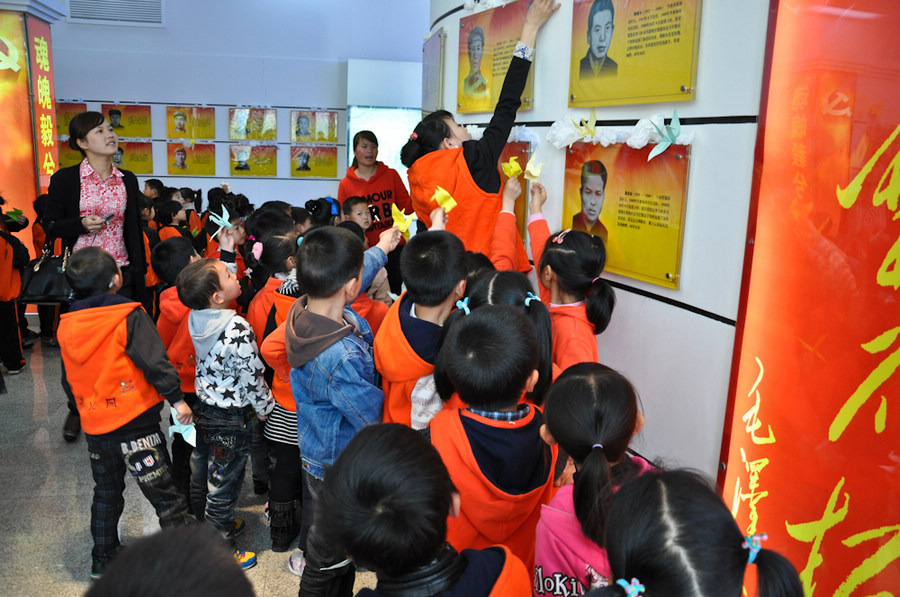 他们到得烈士馆都用不同的方式缅怀烈士,有的用入党宣誓仪式,有的用入团. 加入少先队宣誓仪式向烈士表示继承他们的遗志,特别是幼儿园小朋友他们带着小白花. 小花圈来到烈士面前敬献花圈。