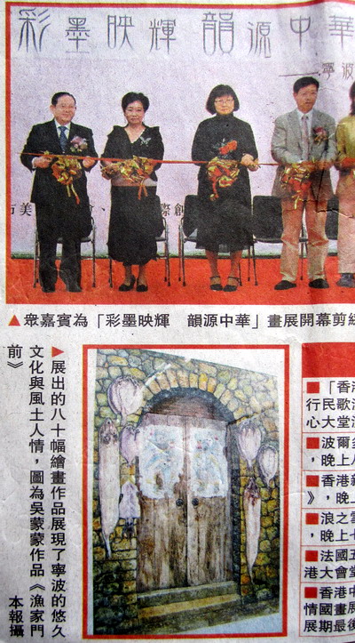 我县水彩画家吴蒙蒙先生的《渔家门前》获得好评,并荣登香港《大公报》。此作品反映宁波渔文化内涵,海派风格,画风潇洒。