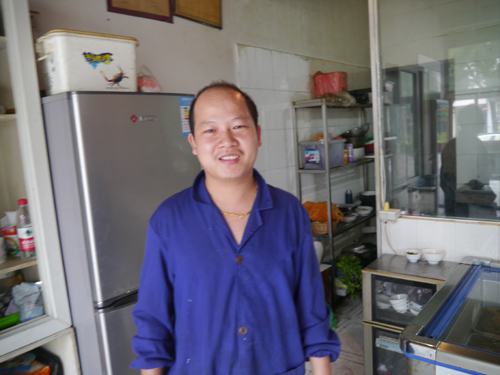 他的店里没有一个外人,三个员工分别是父母和妻子,两间店面的店铺里没有一丝装饰性的装潢,真正是朴素无华的桌椅朴素无华的墙壁朴素无华的灶台加上朴素无华的人,身处其中就象陈韩的微笑一样让人觉得踏实和清爽。