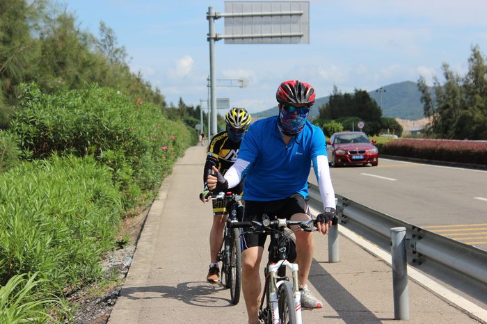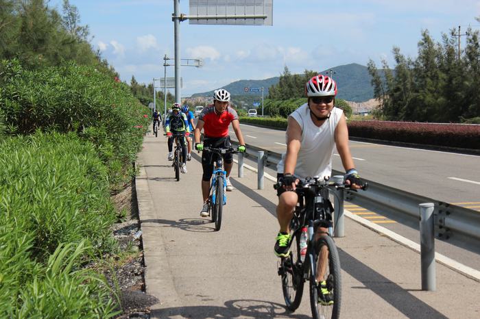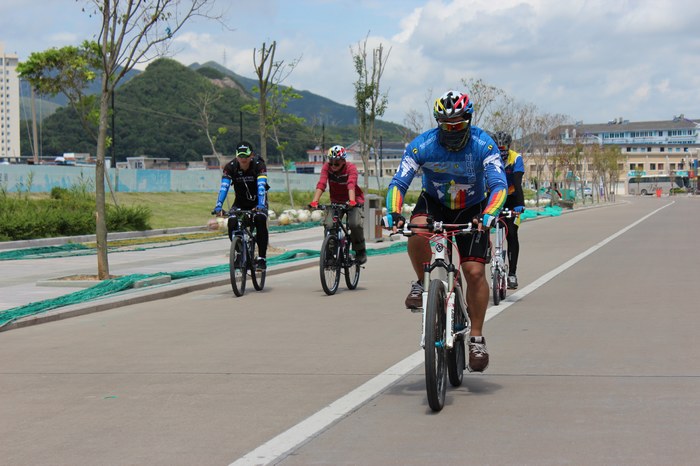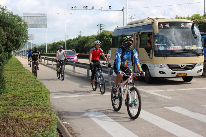 总结:丹城去石浦的路线,风景还不错。今天的太阳不算特别毒,大家骑行都还愉快。丹城去石浦的机动车道柏油路不错,不过自行车道有待改进。今天就有一车因为地开裂,轮胎震裂,导致爆胎。机动车道与自行车道差距太大。夜骑不支持此路线。第一次为大家做后勤,开车有点小累。拍照整理照片更累。不过为了大家服务,带动大家骑车热情。好了,不废话了,上照。