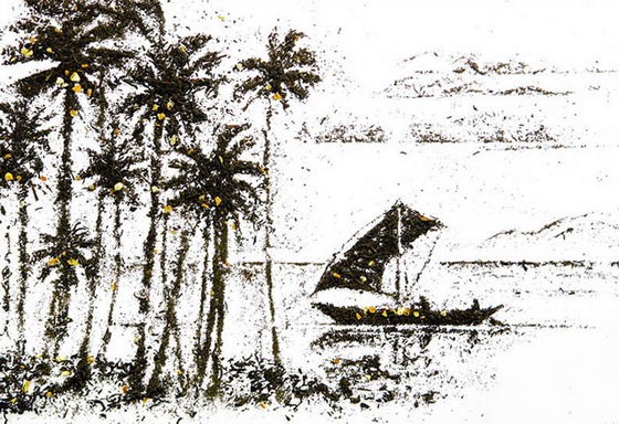提要:莫斯科的设计师和插画家 Andrew Gorkovenko 用茶叶绘制了一系列风景插图,而这些插图也是标明茶的起源,长城、锡兰红茶等等。制作好后,也通过拍摄下来,当做了茶叶的包装插图。