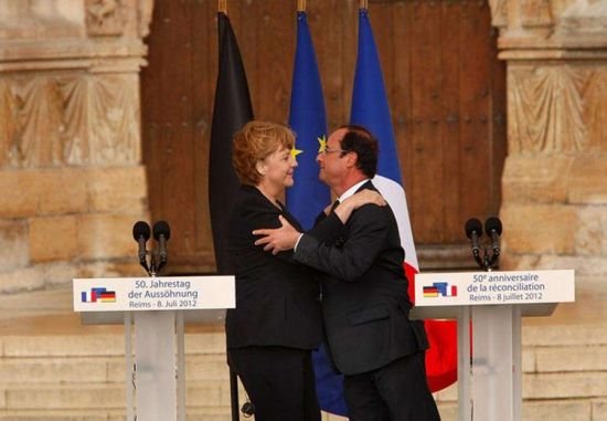 奥朗德总统和德国总理默克尔会面,参加法德和解五十周年庆典。