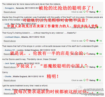 近日美国的一家华人餐厅遭几个歹徒持枪抢劫,店内由于无人会说英文(或者假装不会说)。。歹徒无法沟通只好无奈的走了。。任务宣布失败。。。。对于这个新闻,英国人这么评论。。。。可恶。。