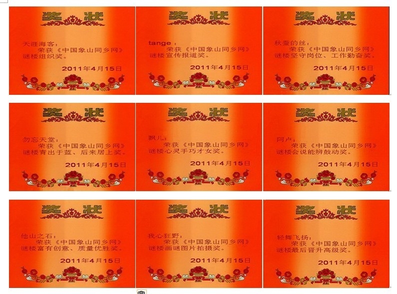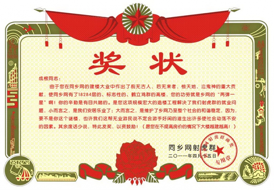 一大早进网,就看到如此包含情感投入造就的荣誉大楼。更感动于我还能上榜。惭愧惭愧!成根叔真是有心人!!
