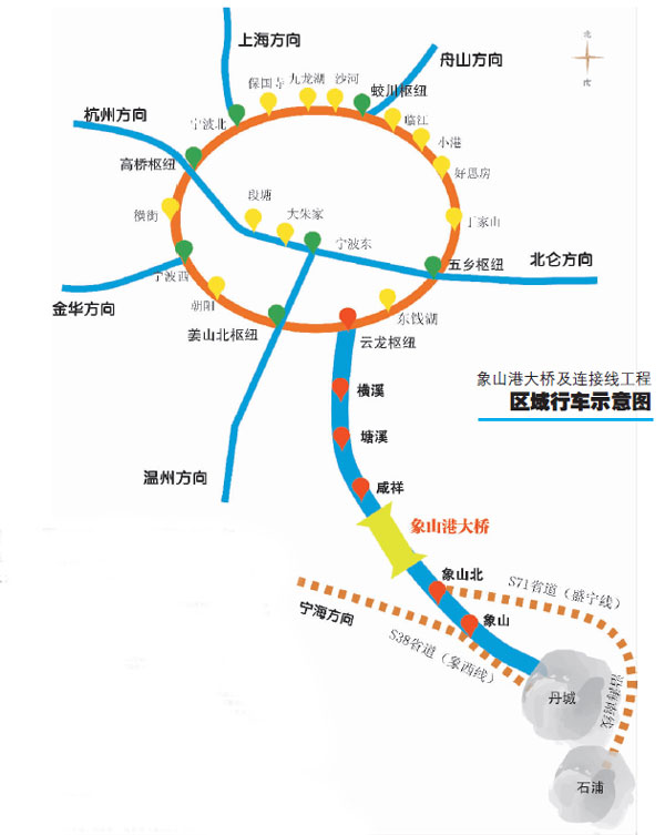 自驾车 ——象山港大桥及连接线进入全省高速公路网,宁波任一高速入口通过绕城高速云龙枢纽转入都可上大桥直达象山!