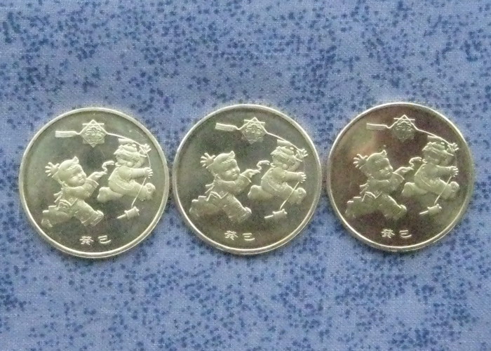 此币大小同1元硬币,色泽同5角硬币;可流通。