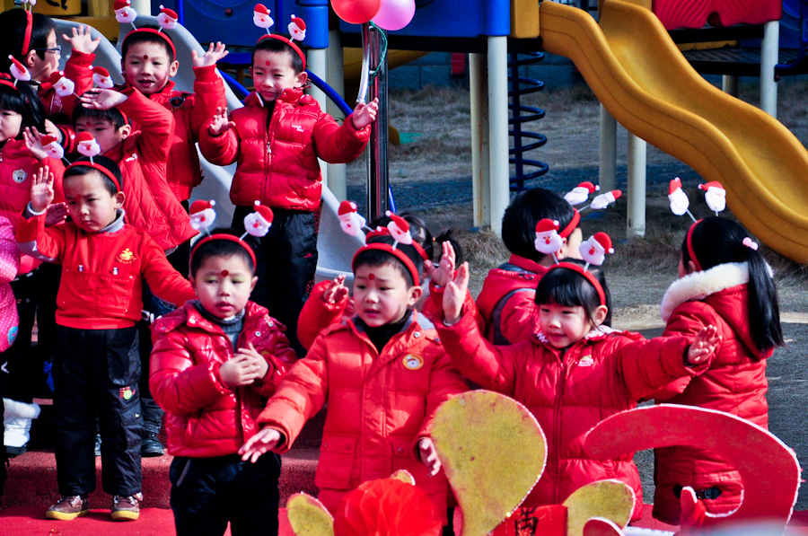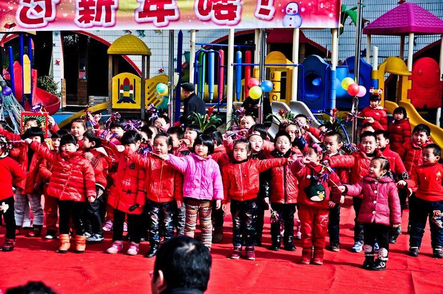 机关幼儿园小朋友们蹦蹦跳跳迎新年