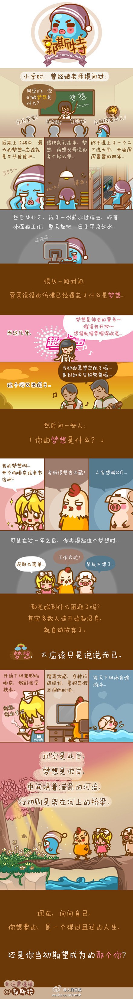 现在,问问自己,你想要的,是一个得过且过的人生,还是你当初期望成为的那个你?人如果没有梦想,跟一块叉烧有什么区别?梦想,不应该只是说说而已!@郭斯特