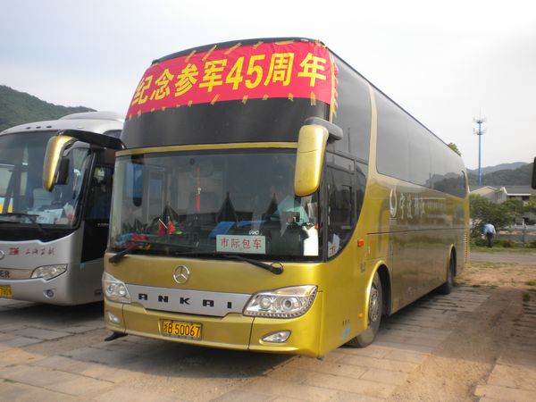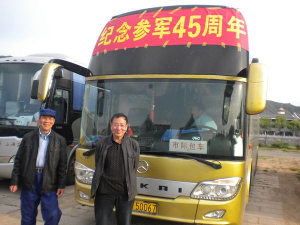 4月27日(三月十八),晴空万里,春光明媚;花红草绿,生机盎然。上午7点,象山县石浦镇一辆车头上方挂着“纪念参军45周年”横幅的浙B.50067旅游车,满载一群60多岁的老兵,从石浦出发,要去宁波北仑大榭岛旅游。