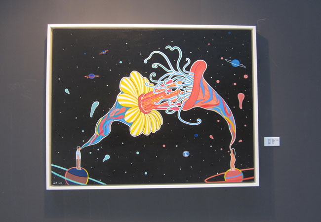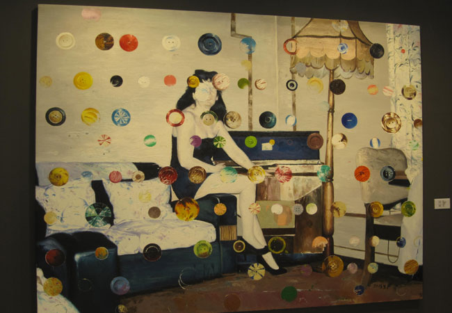这幅画中的女郎,坐在哪里似乎在发呆,脸部也被气泡遮掩住了