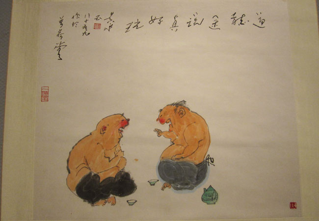 书生干吗要仰面看鱼?鱼是从天上掉下来的吗?或许应该是鱼灯。