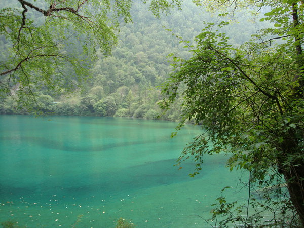 九寨沟的水美在流泉飞瀑,更美在静若处子,色若丹青,神密的海子将那一份湛蓝,那一份淀青自若地展现出来,有的静如明镜,驻足观赏,天空、白云、青山、彩林仿佛一同溶化在海中,演化出水天一色的境界,连时间都在这里凝滞。朝露与夕阳留恋镜海的沉静,为它抹上绚丽的胭脂,愈发俏丽人。有的海子五花斑烂,若美丽的珊瑚,如藏女美丽的衣裙,又像一只盛开的孔雀,尽情的展示着她的美丽。