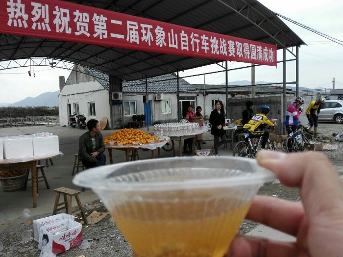 199公里环象完满结束了。感谢象山人民的热情款待。赛后象山视电台采访问:"幸福是什么?"回答说:"幸福就是比赛出发时有人帮拍照,幸福是比赛骑到80公里时有人递上香蕉或馒头,幸福是比赛骑到175公里饥寒交迫时那一碗暖暖的热汤,幸福就是到终点时美女给一个拥抱!"在此再次感谢象山人民提供的协助及吃喝不完的矿泉水,馒头,红牛,香蕉,牛奶。