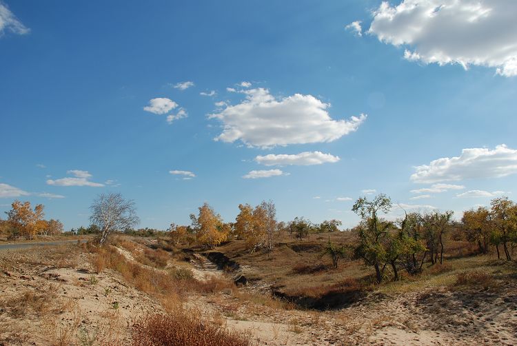 中间有个地方,车子还碰到一个险情,万幸没有出事。事实证明,疲劳驾驶是不可取的。(这是一句大白话,也是一句大实话)10月1日和2日,连续两天都是早上4-5点起床,加上白天游玩和驾驶,下午2点多的时候,我出现了瞌睡症状。因为之前我开车时从来没有瞌睡过,所以对瞌睡是很没有警觉性的。在那条窄路上,因为低头开CD,对面两辆车过来会车,车轮在高低不平的辅路上开始摆动,后座的几位甚至惊恐出声了。还好,稳住了。之后一直到阿斯哈图,没敢放松警惕。