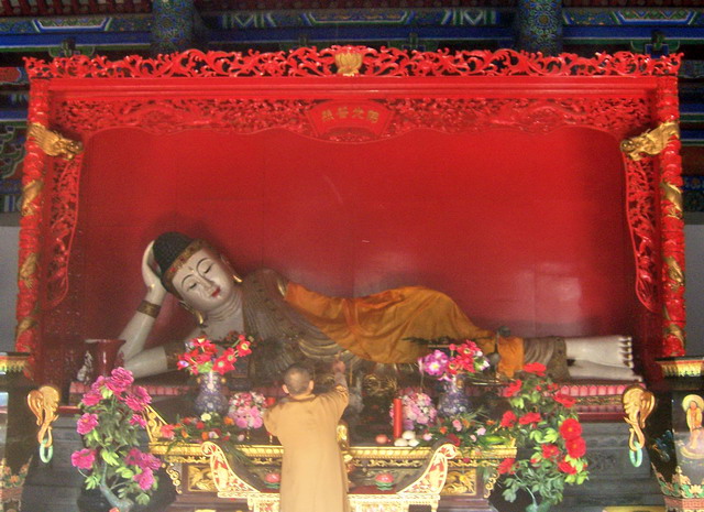 过了法堂有方丈室,是方丈起居与理事之处。千佛殿又名毗卢阁,供奉毗卢(释迦牟尼)佛像,面积达几百平方米,是寺内现存最大殿宇。其东侧有白衣殿,西侧有地藏殿。